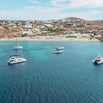 Mykonos Bay Resort & Villas Mykonos Town, som ligger 1 km från Mykonos arkeologiska museum och ganska nära Megali Ammos strand, erbjuder boende i en byggnad uppförd i en modern stil. Detta 4-stjärniga hotell har utsikt över Kretahavet.